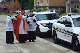 Prior to Mass, and before the assembled faithful, Reverend Father Ladis J. Cizik blessed police vehicles on Franklin Avenue in front of St. Titus Church.